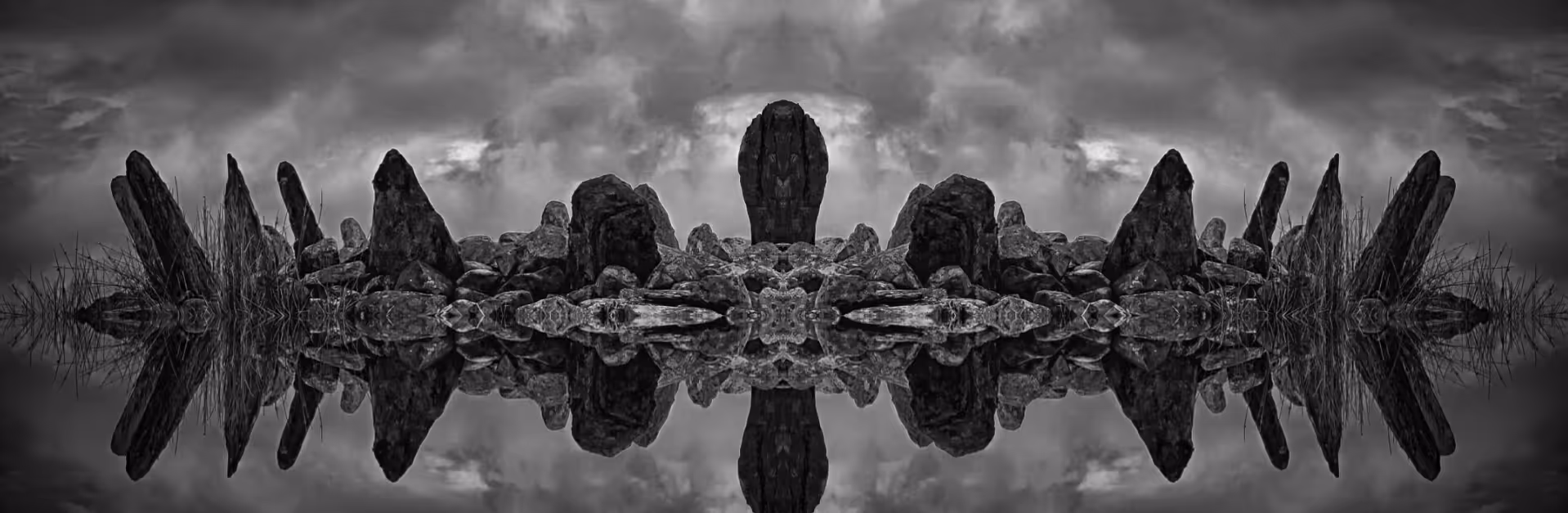 L’insondable visiteur n’a laissé qu’un pigment de mots au pied de l'édifice : Llyn Y Cwn. Il tourne autour de l’enceinte funéraire, les mains figées contre son corps rachitique, enveloppé d’une manteau de laine maculé de résine et de terre. sera sa nouvelle oeuvre, elle capturera l’abyssale beauté de notre silence de schiste bleu. Une heure s’écoule sur notre peau métamorphique. Le voyage initiatique est initié par un gouffre de basses brumeuses que balaye un vent presque friable. Des ambiances enténébrées humectent constamment le bas du tumulus. Comme nous, l’ensemble forme une totalité cohérente, inintelligible. C’est un cromlech aussi vaste qu’hermétique, créé avec le bruit de roches phanérozoïques et témoignant du mystère intact de nos origines. Tout au plus s’évade en plein coeur de route « Pentre Ifan », avec sa brassée d’oiseaux célestes. Tout le reste n’est qu’une halitueuse incarnation de l’irréelle beauté des mondes, dont nous sommes les derniers gardiens, et Llyn Y Cwn le muet témoin.