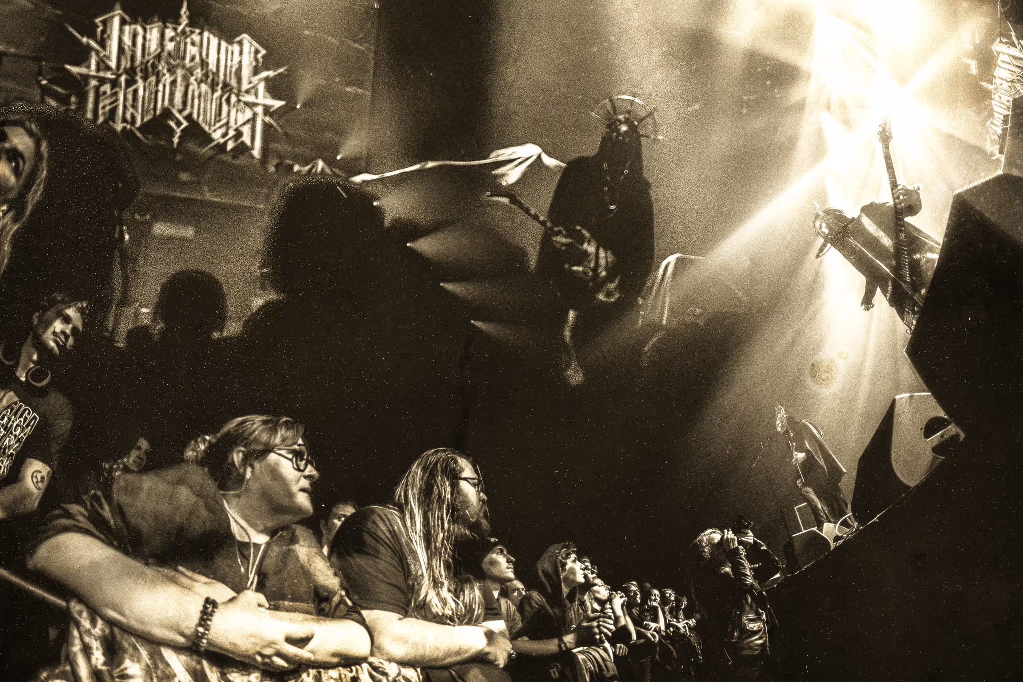 Les pantins mordorés d'Imperial Triumphant s’éveillent, désarticulés et titubants comme s’ils utilisaient pour la première fois leurs membres. Masqués par les visages d’autres et éblouis devant toute cette lumière, ils sont animés par des âmes empruntées qui ne leur appartiennent pas. Ils projettent, dans une musicalité erratique et viscérale, tout leur désarroi face à ces nouvelles sensations beaucoup trop fortes, beaucoup trop intenses. Les nerfs à vif font tressauter leurs instruments dans des secousses crispées de moteur corrodé, démarré à froid. Les cris de leurs articulations détonnent avec leurs expressions figées, le métal se tord et se façonne dans une agonie perceptible. Ils s’éloignent dans la convulsion pour rejoindre une errance suffocante, là où le silence est d’or.