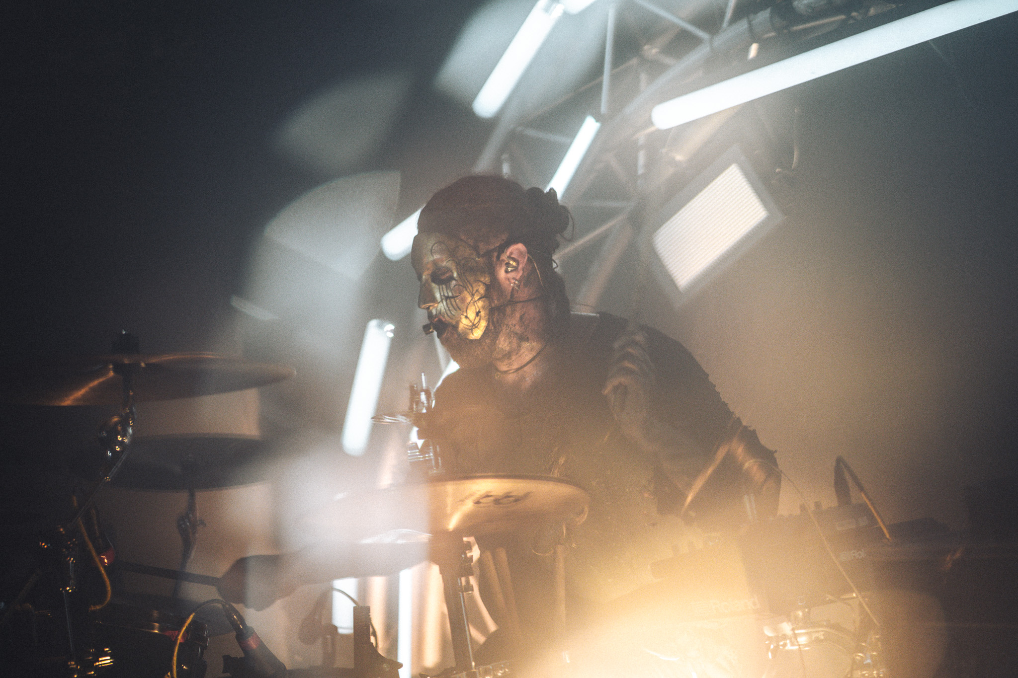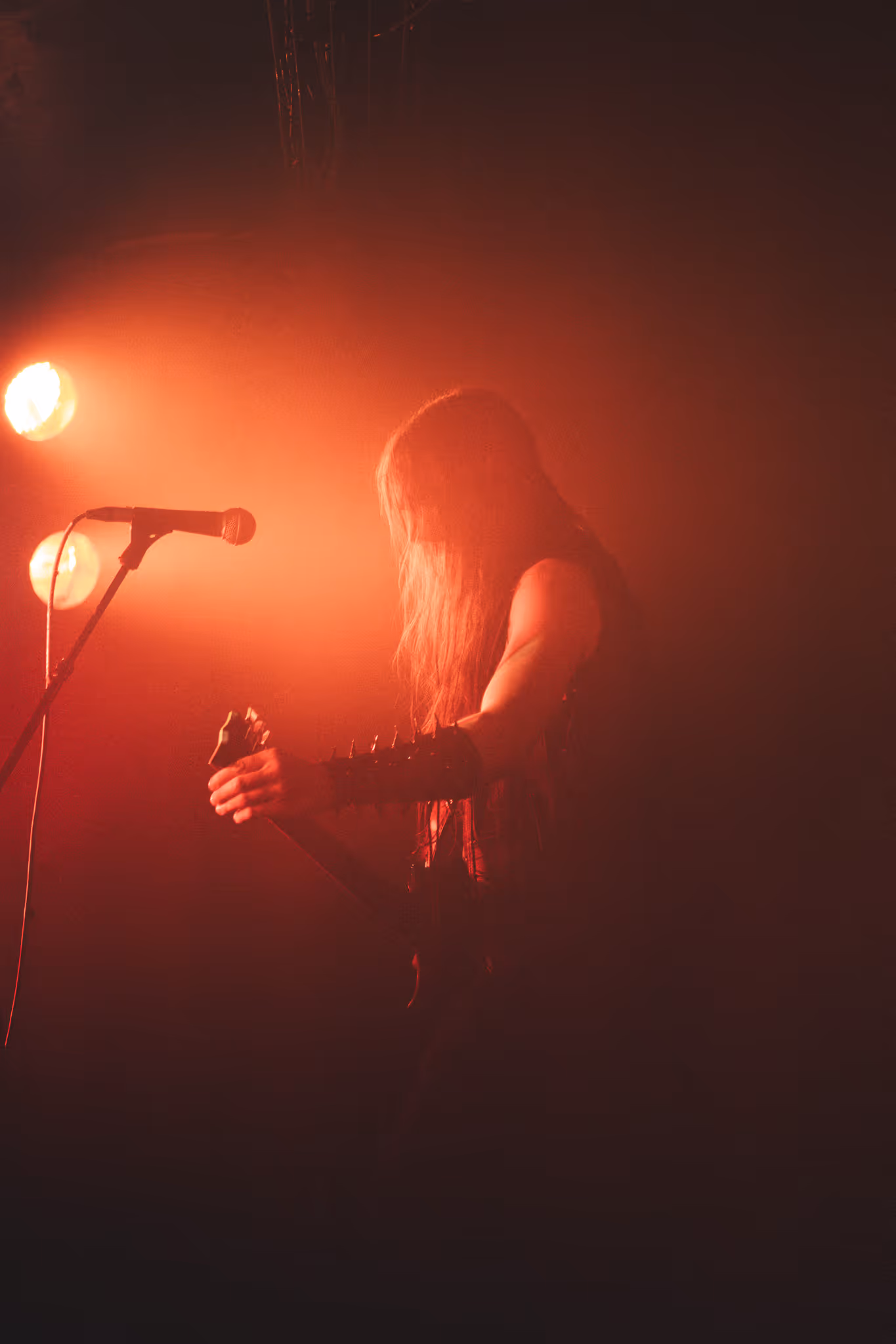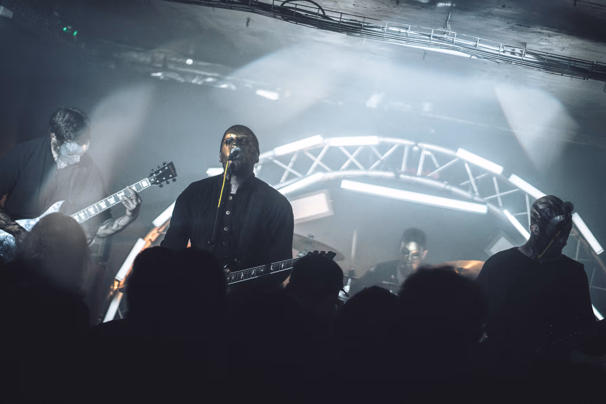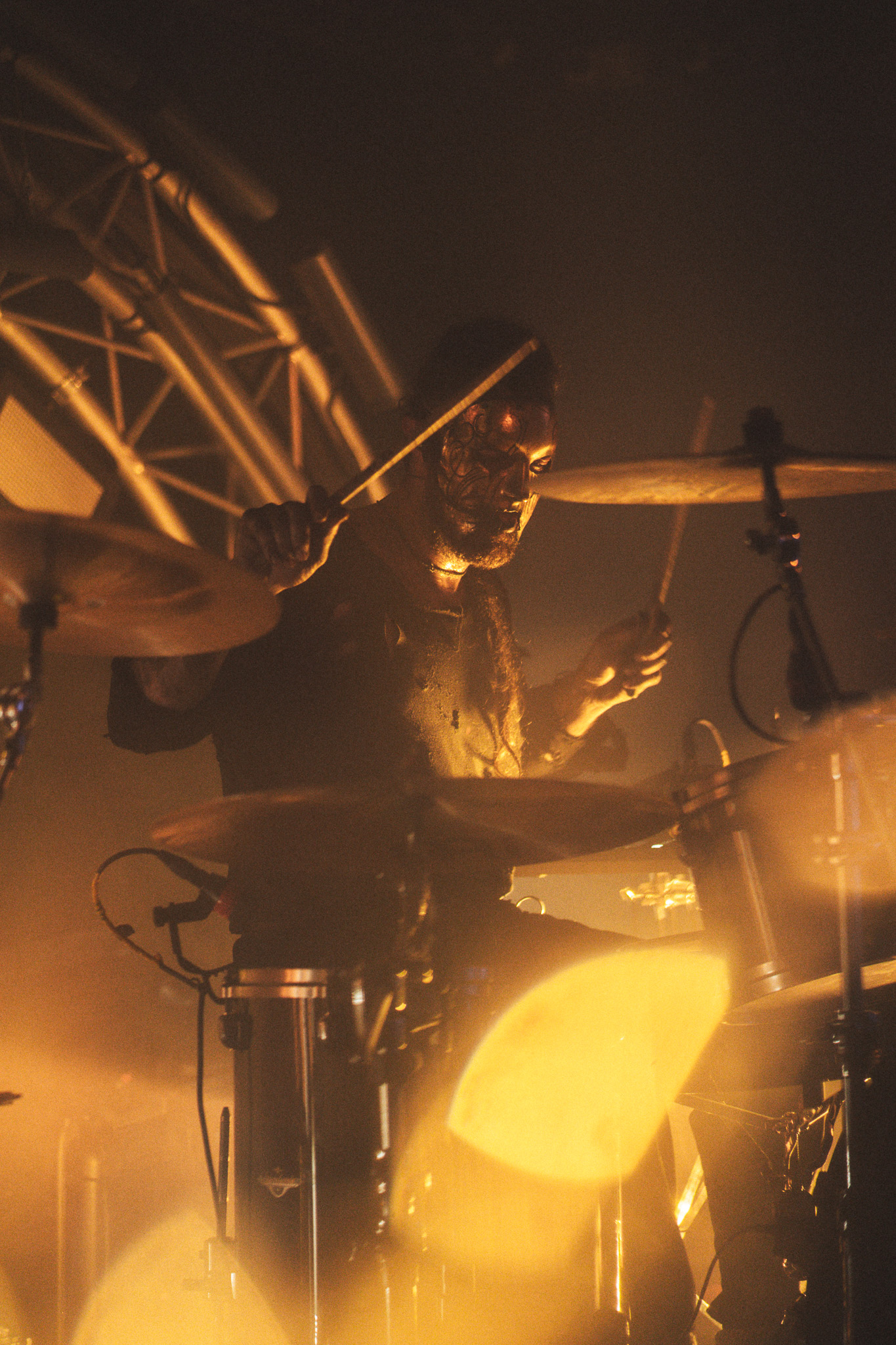 Les derniers passeurs montent sur scène. Ils viennent pour guider les âmes qui s’élèvent vers les flammes et la sidération. Miserere Luminis nous déploie toute l’étendue de sa mélancolie, la déverse abondamment dans des morceaux qui accablent et obsèdent. Un chapelet de fardeaux précieux, brutal mais tout aussi fragile et sensible. Les larmes coulent sur les corps des inanimés, dépêchés de se quitter une nouvelle fois pour ce voyage. Davantage terrassées par ce bouleversement émotionnel, nos âmes se bousculent sur cet autel de passion enflammée. Ce sera le dernier endroit où nous pourrons trouver refuge avant le néant.