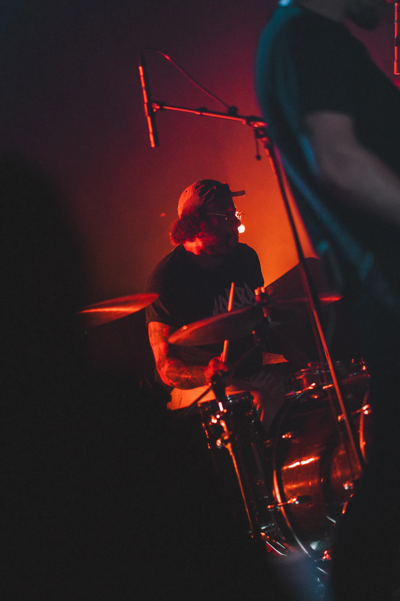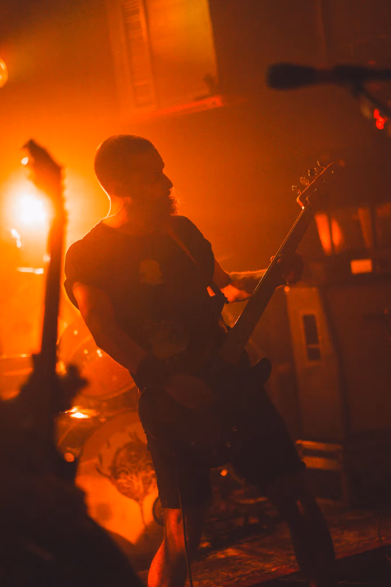 La foule se disperse à peine avant que les apôtres de Dvne ne viennent se poser sur cette plaine redevenue calme, éclairée par une lune rousse. Ayant repéré la scintillance sur le sol remué, l’équipage se présente pour récolter son dû, s'engouffrant dans le calme après la tempête pour déclencher un véritable orage solaire. Entre les rayons de lumières qui vont vers le ciel et les cris d’adoration des fidèles, les guitares aux cordes doubles creusent d’harmonies aiguisées nos couches sédimentaires rigides, tandis que des machines rythmiques turbinent fort à l’arrière. À la lueur de leurs écrans de contrôle, les pilotes du tout neuf terraformeur Voidkind pilonnent les aspérités qu’ils rencontrent avec enthousiasme, dans un relâchement contrôlé qui atteste de toute leur maîtrise. Dvne démontre l'étendue de son talent sur le terrain. Un air étouffant nous atteint par vagues successives quand survient « Abode of the Perfect Soul ». Les élans de chaleur sont chargés de la substance brillante tant convoitée. Nos faciès s’abaissent dans les projections abrasives et hypnotiques, se relèvent marqués par la transe induite. Pendant « Reaching for Telos » nous nous rassemblons en une procession compacte, reconnaissante du mirage qui est présenté et de la beauté de l’ivresse accordée. Nous approchons de la « Cobalt Sun Necropolis » en suivant les vociférations qui résonnent entre les dunes. Les fracas de « Sarmatæ » ont attiré la bête qui s’élance dans le sol mouvant pour répondre à l’appel, et tous nous engloutir. Elle brise les gros chevrons de la machine, pulvérise son acier épais. Les abrasions se dispersent et donnent maintenant à l’étendue désertique une senteur presque saline. Dvne s’éclipse, disparaît derrière la lumière rouge et brûlante qui assomme, nos oreilles encore ébahies par tant de cohésion et d’intensité.